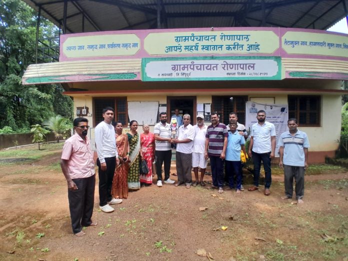 सावंतवाडी : तालुक्यातील रोणापाल गावची तंटामुक्ती गाव समिती आज रोणापाल ग्रामपंचायतीमध्ये झालेल्या ग्रामसभेत गठित करण्यात आली. यावेळी उपस्थित असणाऱ्या ग्रामस्थांनी गावात सामाजिक पातळीवर सक्रिय सहभाग असणारे श्री सुदिन मोहन गावडे यांची तंटामुक्ती समिती अध्यक्ष पदी बिनविरोध निकेली. यावेळी सभेत उपस्थित ग्रामस्थ श्री. चंद्रकांत सावंत यांच्या हस्ते पुष्पगुच्छ देऊन नवनिर्वाचित तंटामुक्ती समिती अध्यक्ष यांचे स्वागत व अभिनंदन सर्व ग्रामस्थांच्या वतीने करण्यात आले. यावेळी रोणापाल गावचे उपसरपंच योगेश केणी, पोलीस पाटील निर्जरा परब, ग्रामपंचायत अधिकारी सौ. आळवे, ग्रामपंचायत सदस्य नंदकिशोर नेमण, कृष्णा परब, सौ. गावडे व ग्रामस्थ श्री चंद्रकांत सावंत, विष्णु तुयेकर, मंगेश गावडे, उदय देऊलकर, राजन परब, विष्णु सावंत, अरुण परब, श्रीमती पवार, उमेश पेडणेकर, कृष्णा केणी, अरुण केणी व ग्रामपंचायत शिपाई रमेश देऊलकर उपस्थित होते.