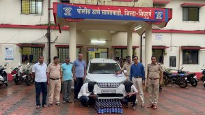 सावंतवाडी : सावंतवाडी पोलिसांना प्राप्त गोपनीय माहितीवरून बेकायदा गोवा बनावटीची दारू वाहतूक केल्याप्रकरणी कोल्हापूर येथील दोघांना ताब्यात घेण्यात आले आहे. त्यांच्याकडून ९ लाख ५७ हजारच्या दारूसह कार जप्त करण्यात आली आहे. वाहन क्र. MH09/FV/8406 या वाहनाचे सीट कव्हर खाली कप्पे करून 57,600 रुपयाची गोवा बनावटीची दारू(१४४ bottles) चालक महेश आप्पा पाटील वय 35 व रोहन मानसिंग केंगारे वय 31 दोन्ही ,राह. हुपरी, तालुका – हातकणंगले, जिल्हा – कोल्हापूर, हे गोवा ते कोल्हापूर अशी वाहतूक करताना माजगाव गरड याठिकाणी मिळून आले.