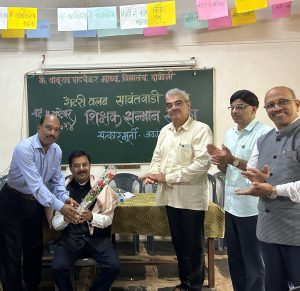 यावेळी प्रमुख वक्ते प्रा. रुपेश पाटील म्हणाले, शिक्षक हा समाज घडविणारा अभियंता असून अनादी काळापासून गुरुजनांना समाजात मानाचे स्थान आहे. हे स्थान टिकवणे हल्लीच्या काळात फार अवघड झाले आहे. क्षेत्र कोणतेही असो त्याच्यात काम करताना अडचणी येतात. मात्र अडचणींवर मात करण्याचे कौशल्य शिक्षक आपल्याला प्रदान करीत असतात. म्हणून शिक्षक हे नेहमीच समाजाला एक सकारात्मक दिशा प्रदान करतात. त्यांना सलाम करण्याचा आजचा दिवस ‘शिक्षक दिन’ म्हणून साजरा केला जातो.