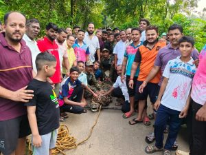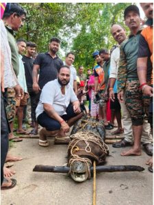 ‘ती’ महाकाय मगर अखेर वनविभागाच्या पथकाने केली जेरबंद ! ; वेत्ये येथील ग्रामस्थांनी घेतला सुटकेचा निःश्वास!