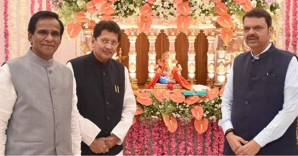 मुंबई : उपमुख्यमंत्री तथा गृहमंत्री देवेंद्र फडणवीस यांच्या निवासस्थानी विराजमान झालेल्या श्री गणेशाचे शिक्षणमंत्री तथा मुंबईचे पालकमंत्री दीपक केसरकर यांनी दर्शन घेतले. महाराष्ट्रासमोरील विघ्ने दूर कर, जनतेला सुखी ठेव, अशी प्रार्थना केली. यावेळी उपमुख्यमंत्री देवेंद्र फडणवीस आणि माजी केंद्रीय मंत्री रावसाहेब दानवे आदी उपस्थित होते.