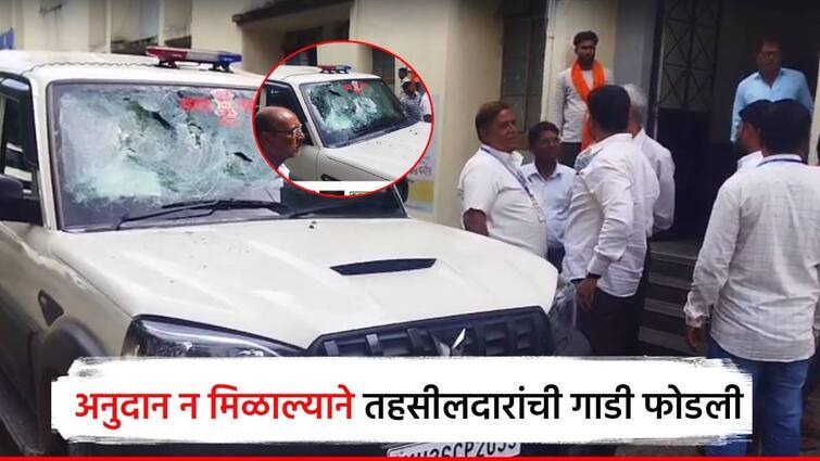 अनुदान मिळालं नाही, शेतकऱ्याने तहसिलदारांची गाडीच फोडली! ; अधिकाऱ्यांनी केला खुलासा.