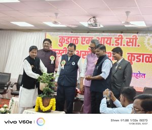 कुडाळ : कुडाळ MIDC इंडस्ट्रीज असोसिएशनच्या दिमाखदार सन्मान सोहळ्याला सुरुवात // प्रथम सत्रात होणाऱ्या मार्गदर्शनासाठी BVG ग्रुपचे सर्वेसर्वा, यशस्वी उद्योजक हणमंतराव गायकवाड व्यासपीठावर उपस्थित // कुडाळ MIDC इंडस्ट्रीज असोसिएशनचे अध्यक्ष मोहन होडावडेकर यांनी केलं स्वागत // उद्योजक रवींद्र माणगावे, आशिष पेडणेकर यांचेही झाले स्वागत // सचिव ॲड. नकुल पार्सेकर, उमेश गाळवणकर यांचीही उपस्थिती// वृक्षाला पाणी घालून मान्यवरांच्या हस्ते करण्यात आले कार्यक्रमाचे उद्घाटन//भारतीय उद्योजक क्षेत्राला नवसंजीवनी देणारे उद्योजक हणमंतराव गायकवाड थोड्याच वेळात करणार मार्गदर्शन//