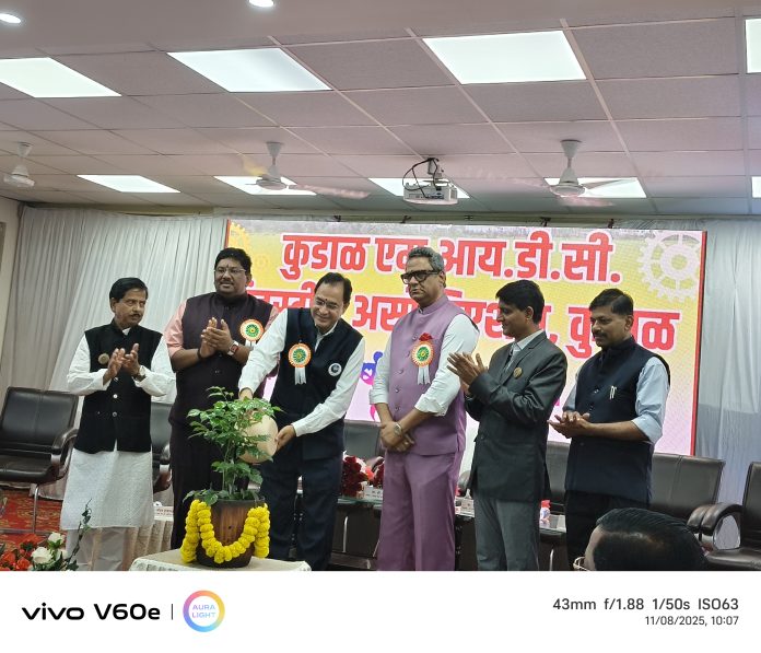 कुडाळ : कुडाळ MIDC इंडस्ट्रीज असोसिएशनच्या दिमाखदार सन्मान सोहळ्याला सुरुवात // प्रथम सत्रात होणाऱ्या मार्गदर्शनासाठी BVG ग्रुपचे सर्वेसर्वा, यशस्वी उद्योजक हणमंतराव गायकवाड व्यासपीठावर उपस्थित // कुडाळ MIDC इंडस्ट्रीज असोसिएशनचे अध्यक्ष मोहन होडावडेकर यांनी केलं स्वागत // उद्योजक रवींद्र माणगावे, आशिष पेडणेकर यांचेही झाले स्वागत // सचिव ॲड. नकुल पार्सेकर, उमेश गाळवणकर यांचीही उपस्थिती// वृक्षाला पाणी घालून मान्यवरांच्या हस्ते करण्यात आले कार्यक्रमाचे उद्घाटन//भारतीय उद्योजक क्षेत्राला नवसंजीवनी देणारे उद्योजक हणमंतराव गायकवाड थोड्याच वेळात करणार मार्गदर्शन//