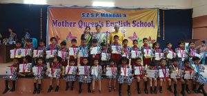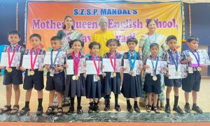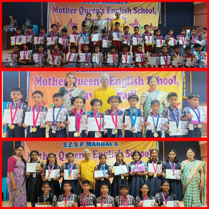 सावंतवाडी : सिंधुदुर्ग जिल्हा शिक्षण प्रसारक मंडळ संचलित मदर क्वीन्स इंग्लिश स्कूल सावंतवाडीच्या विद्यार्थ्यांनी रंगोत्सव सेलिब्रेशन नॅशनल लेवल आर्ट स्पर्धेमध्ये उत्तुंग यश संपादित केले. रंगोत्सव सेलिब्रेशन तर्फे कलरिंग ,कोलाज, स्केचिंग, हॅन्ड रायटिंग, मास्क मेकिंग, टॅटू मेकिंग ,कॅरी कॅचर, फिंगर अँड थम पेंटिंग ,ग्रीटिंग कार्ड, कार्टून मेकिंग इत्यादी स्पर्धा घेण्यात आल्या होत्या. त्यामध्ये नर्सरी ते दहावीपर्यंतचे 496 स्पर्धक सहभागी झाले.