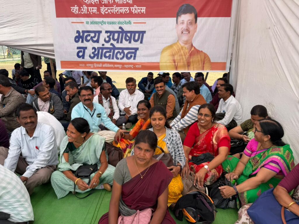 नागपूर : राज्यातील पत्रकार डिजिटल माध्यमे, साप्ताहिके आणि रेडिओ या माध्यमांतील पत्रकारांना भेडसावणाऱ्या गंभीर प्रश्नांबाबत ‘व्हॉईस ऑफ मीडिया’, ‘VOM इंटरनॅशनल फोरम’ यांनी मुख्यमंत्री देवेंद्र फडणवीस यांचे लक्ष वेधत आजपासून नागपूर हिवाळी अधिवेशनाच्या पार्श्वभूमीवर नागपूर येथे उपोषण सुरू केलं आहे. पंढरपूर येथे नुकत्याच झालेल्या राज्य शिखर अधिवेशनात सर्व संमतीने मंजूर झालेल्या मागण्यांवर तातडीची कार्यवाही करण्याची मागणी येथील उपोषणकर्ते करत आहेत.