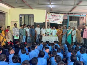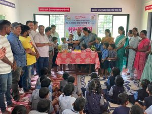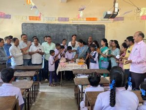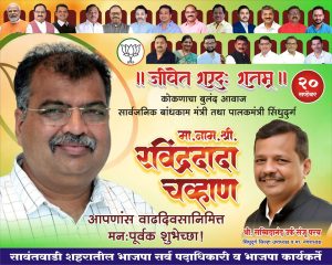 सावंतवाडी : आज महाराष्ट्राचे सार्वजनिक बांधकाम मंत्री तथा सिंधुदुर्गचे पालकमंत्री रवींद्र चव्हाण यांच्या वाढदिवसाच्या निमित्ताने भाजपा युवामोर्चा प्रदेश उपाध्यक्ष विशाल परब यांच्या संकल्पनेतून सावंतवाडी येथील शाळा नंबर २, ४, ६ तसेच वि. स. खांडेकर या चार शाळांमध्ये मुलांना खाऊ वाटप करण्यात आले व केक कापून पालकमंत्री श्री. चव्हाण यांचा वाढदिवस साजरा करण्यात आला.