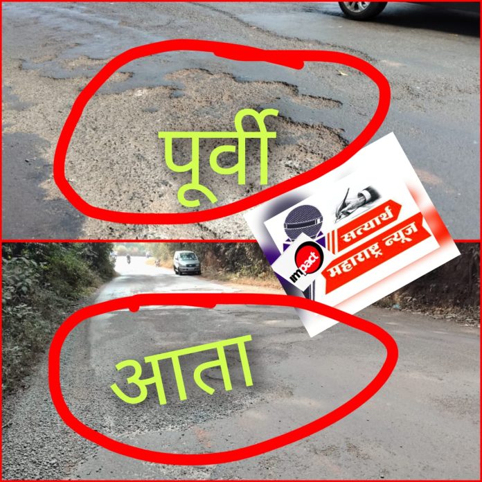 त्यामुळे संबंधित विभागाने ,ठेकदाराने याबाबत तात्काळ दखल घेत या रस्त्यावर पडलेले खड्डे दुरुस्तीचे काम युद्धपातळीवर सुरू झाल्याने वाहनचालक, ग्रामस्थानी समाधान व्यक्त केले आहे.