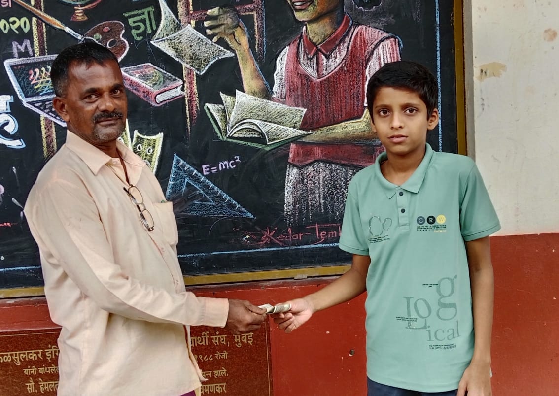 - सावंतवाडी : दि. 4 ऑगस्ट रोजी येथील कळसुलकर शाळेच्या सभागृहात देशभक्तीपर समूहगीत गायनाच्या सरावासाठी आलेला इयत्ता नववी ब चा साईल महेश हवालदार या विद्यार्थ्यांने त्याला सापडलेले एक हजार रुपये आपल्या वर्ग शिक्षिका सौ. बांदेलकर यांच्याकडे दिले. चौकशी केली असता शाळेत आलेल्या पाटणकर गॅस सर्विस चे श्री .सुनील तोरस्कर यांचे ते पैसे असल्याचे निदर्शनास आले. त्यांना बोलावून त्यांचें पैसे त्यांना सुपूर्द करण्यात आले.