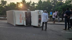 मुंबई – गोवा महामार्गावर मासे वाहतूक करणारी बोलेरो पिकअप झाली पलटी! ; पिटढवळ पुलावर झाला अपघात.