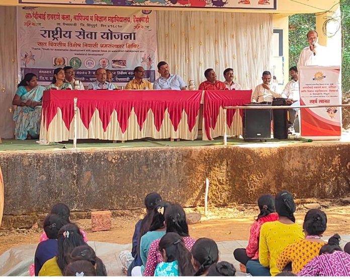 वैभववाडी : वैभववाडी येथील महाराणा प्रतापसिंह शिक्षण संस्था, मुंबई संचलित आनंदीबाई रावराणे कला, वाणिज्य व विज्ञान महाविद्यालयातील राष्ट्रीय सेवा योजना (NSS) विभागाचा नावळे (ता. वैभववाडी) येथे आयोजित सात दिवसीय निवासी श्रमसंस्कार शिबिराचा समारोप समारंभ स्थानिक समिती अध्यक्ष श्री. सज्जनकाका रावराणे यांच्या अध्यक्षतेखाली संपन्न झाला.