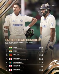 बांगलादेशविरुद्धच्या दुसऱ्या कसोटीत भारताने आपला पहिला डाव 9 बाद 285 धावांवर घोषित केला. प्रथम फलंदाजी करणाऱ्या बांगलादेशचा पहिला डाव भारताने 233 धावांत गुंडाळला होता. भारताला पहिल्या डावात 52 धावांची आघाडी मिळाली. कसोटीतील सामन्याच्या चौथ्या दिवशी भारतीय संघाने आक्रमक खेळ केला. भारतीय संघाने सर्वांत वेगवान 50, 100 आणि 200 धावांचा विक्रम नोंदविला.भारताकडून यशस्वी जैस्वाल (72) आणि केएल राहुल (68) यांनी अर्धशतके झळकावली. विराट कोहली 47 धावा करून शकीब अल हसनच्या गोलंदाजीवर बाद झाला. त्याने आपल्या आंतरराष्ट्रीय कारकिर्दीत 27 हजार धावाही पूर्ण केल्या. बांगलादेशकडून शाकिब अल हसनने 4 आणि मेहदी हसन मिराजने 3 विकेट घेतल्या. हसन महमूदला 1 बळी मिळाला. भारताकडून तीन अर्धशतकांच्या भागीदारी झाल्या. रोहित आणि यशस्वी यांनी पहिल्या विकेटसाठी 55 धावांची भागीदारी केली. यशस्वी आणि शुभमन यांच्यात दुसऱ्या विकेटसाठी 72 धावांची भागीदारी झाली. कोहली आणि राहुल यांनी पाचव्या विकेटसाठी 87 धावांची भागीदारी केली. भारताने कानपूर कसोटी अनिर्णित राहण्याची चिन्हे असताना विजयाकडे वळवली आहे.