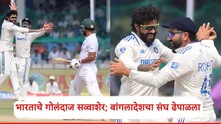 भारत आणि बांग्लादेश यांच्यातील दुसरा कसोटी सामन्यात भारतीय संघाला विजयासाठी 95 धावांचं आव्हान देण्यात आलं आहे. बांगलादेशने दुसऱ्या डावात 10 विकेट्स गमावत 146 धावा केल्या.  बांगलादेशकडून शादमान इस्लामने सर्वाधिक 50 धावा केल्या. तर पहिल्या डावात शतक झळकावणाऱ्या मोनीमूल हक दुसऱ्या डावात मोठी खेळी करण्यात अपयशी ठरला. मोनीमूल हकने 8 चेंडूत फक्त 2 धावा केल्या. तर झाकीर हुसैनने 10, हसन महमूदने 4, कर्णधार नजमूल शांतोने 19, लिटन दासने 1, मेहंदी हसनने 9, मुस्तफिझूर रहीमने 37 धावा केल्या. भारतीय संघाच्या गोलंदाजांनी कसोटीच्या दोन्ही डावात अप्रतिम कामगिरी केली. दुसऱ्या डावात भारताकडून रविचंद्रन अश्विनने 3, रवींद्र जडेजा 4, आकाश दीपने 1, जसप्रीत बुमराहने 3 विकेट्स पटकावल्या.