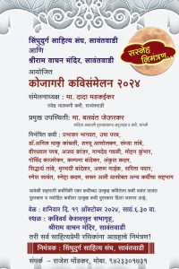 सावंतवाडी : सिंधुदुर्ग साहित्य संघ आणि श्रीराम वाचन मंदिर, सावंतवाडी यांच्या संयुक्त विद्यमाने कोजागरी कवी संमेलन २०२४ ज्येष्ठ मालवणी कवी दादा मडकईकर यांच्या अध्यक्षतेखाली शनिवार १९ ऑक्टोबर रोजी आयोजित केले आहे. श्रीराम वाचन मंदिरच्या कविवर्य केशवसुत सभागृहात सायंकाळी ६.३० वाजता होणाऱया या संमेलनासाठी साहित्य अकादमी पुरस्कारप्राप्त अनुवादक व कवी बलवंत जेऊलकर यांची प्रमुख उपस्थिती राहणार आहे.