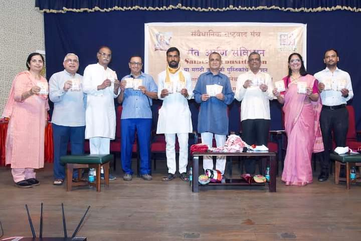 पुणे : भारतातील संत परंपरेची समता, बंधुता आणि न्याय या वैश्विक मूल्यांशी बांधिलकी ठेवून, त्या काळात समाजातील अनिष्ट परंपरा, सामाजिक विषमता, स्त्रियांवरील अन्याय आणि अंधश्रद्धांविरूद्ध जोरदार आवाज उठवला त्या सर्व उदात्त मानवीमूल्यांचे भारतीय राज्यघटनेत प्रतिबिंब पडले असल्याचे प्रतिपादन ह.भ.प. श्री. ज्ञानेश्वर महाराज बंडगर यांनी केले. ‘संवैधानिक राष्ट्रवाद मंच’च्या वतीने काल आयोजित केलेल्या ‘संत आणि संविधान’ या पुस्तिकांच्या प्रकाशन समारंभात प्रमुख पाहुणे म्हणून ते बोलत होते. संविधान प्रसार चळवळीचे नेते प्रा. सुभाष वारे हे या कार्यक्रमाच्या अध्यक्षस्थानी होते. या प्रसंगी, संवैधानिक राष्ट्रवाद मंचाचे संस्थापक प्रशांत कोठडिया, संयोजक विवेक काशिकर, संपादक प्रा. नीलम पंडित आणि विद्यालंकार घारपुरे, साहित्यविश्व प्रकाशनाचे विक्रम शिंदे, साखळीपीर राष्ट्रीय तालीम मारूती मंदिराचे अध्यक्ष रविंद्र माळवदकर, मंचाचे सहसंस्थापक सीए प्रसाद झावरे, ज्येष्ठ समाजसेवक मच्छिंद्र गोजमे, संदीप बर्वे, सामाजिक कार्यकर्त्या तमन्ना इनामदार, अरुणा तिवारी, मोहिनी कारंडे, चित्रकार मिलिंद जोशी, रामदास मारणे, आदी मान्यवर व्यासपीठावर उपस्थित होते.