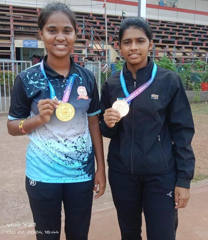 कणकवली : मुंबई विद्यापीठाच्या मरीन लाईनच्या क्रीडांगणावर नुकत्याच पार पडलेल्या २०२४-२५ या शैक्षणिक वर्षाच्या वैयक्तिक मैदानी क्रीडा स्पर्धेत कणकवली महाविद्यालयाची कु. नम्रता गावकर हिने हॅपथ्याथलॉन या क्रीडा प्रकारात मुंबई विद्यापीठात सुवर्णपदक प्राप्त केले आहे. तर कु. सुजाता हरणे हिने कांस्यपदक मिळवले आहे.