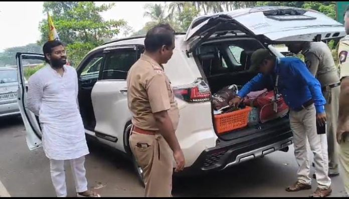 अमित शहा किंवा नरेंद्र मोदी यांच्या हेलिकॉप्टर चेकिंगचे पुढे काय झाले माहित नाही, पण सावंतवाडीमधील सध्या फुल्ल चर्चेत असलेल्या अपक्ष उमेदवार विशाल परब यांच्या गाडीचे चेकिंग मात्र आज कसून करण्यात आले. विशाल परब हे संयमी आणि शांत नेतृत्व म्हणून ओळखले जाते. यावेळी त्यांनी पोलिसांना शांतपणे आपले काम करू दिले. गाडीत आक्षेपार्ह असे काहीच न मिळाल्यानंतरही किंचित सुद्धा अकाउंट तांडव न करता पोलिसांची आस्थेने चौकशी केली आणि हसतमुखाने त्यांचा निरोप घेऊन ते पुढील दौऱ्यावर निघून गेले. त्यांच्या गाडीतील सामानाच्या चेकिंगचा आणि त्यांच्या हसतमुख वागणुकीचा व्हिडिओ मात्र सोशल मीडियावर चांगलाच व्हायरल होत आहे.