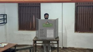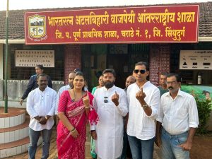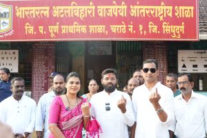 सावंतवाडी : भारतीय जनता पार्टीचे बंडखोर व अपक्ष उमेदवार विशाल परब हे सावंतवाडी मतदार संघातून नशीब आजमावत आहेत. आज सकाळी सात वाजून पंधरा मिनिटांनी त्यांनी सपत्नीक चराठा येथील भारतरत्न अटलबिहारी वाजपेयी आंतरराष्ट्रीय शाळा नंबर एक येथे मतदान केले.