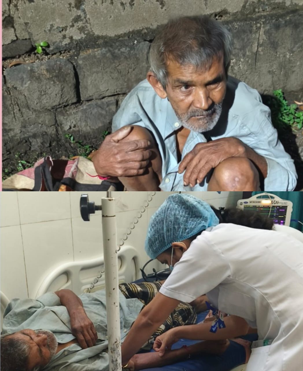 सदर निराधार वृद्ध हा घावनळे येथील रहिवाशी असून गेल्या दोन दिवसाच्या पावसामध्ये चिंब भिजला होता व पोटातही अन्नाचा कण नव्हता. काल सकाळी ताप येऊन त्याला ओमीटिंग होत होतं त्यामुळे तो निराधार वृद्ध सारखा रस्त्यावर तळमळत होता हे पाहून सामाजिक बांधिलकीच्या कार्यकर्त्यांनी त्याला त्वरित हॉस्पिटलमध्ये ऍडमिट केलं सदर उद्याच्या वृद्धाच्या नातेवाईकांशी संपर्क होऊ शकला नाही.
