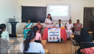 वैभववाडी : आनंदीबाई रावराणे कला, वाणिज्य व विज्ञान महाविद्यालयातील महिला विकास कक्ष व रोटरी क्लब वैभववाडी यांच्या संयुक्त विद्यमाने दिनांक १३ डिसेंबर २०२४ रोजी अस्मिता उपक्रमांतर्गत मासिक पाळी व्यवस्थापन या कार्यक्रमाचे आयोजन करण्यात आले. या कार्यक्रमात प्रमुख मार्गदर्शक म्हणून डॉ. मनीषा टक्के व श्रीम. जोत्स्ना पाटील (सी. एच. ओ.) यांनी विद्यार्थिनींना मासिक पाळी दरम्यानची स्वच्छता राखण्याचे महत्व,आहार आणि त्या संदर्भातील गैरसमज व समस्या दूर करण्याबाबत मार्गदर्शन केले.