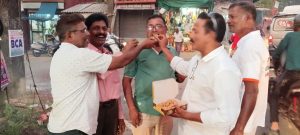सावंतवाडी : महाराष्ट्र राज्य मंत्रीमंडळाचा विस्तार नागपूर राजभवन येथे करण्यात आला. यावेळी भाजपा नेते नितेश राणे यांनी मंत्री पदाची शपथ घेताच मळगांव भाजपा पदाधिकारी व कार्यकर्त्यांकडून एकच जल्लोष करण्यात आला. यावेळी फटाक्यांची आतिषबाजी करत मिठाई वाटप करण्यात आले.