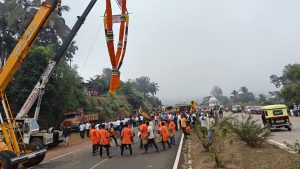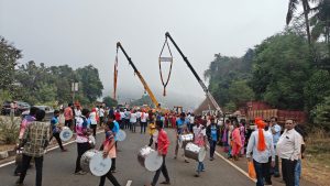 खारेपाटण : सिंधुदुर्ग जिल्ह्याच्या प्रवेशद्वारावर खारेपाटण येथे कार्यकर्त्यांचा अपूर्व उत्साहात मत्स्य व बंदर विकास मंत्री नितेश राणे यांचे आता काही वेळातच भव्य स्वागत केले जाणार आहे. या स्वागतासाठी जेसीबीच्या सहाय्याने फुलांची उधळण क्रेन साह्याने पुष्पहार घातले जाणार आहेत. ढोल ताशांचा गजर फटाक्यांच्या आतशबाजी आणि कार्यकर्त्यांच्या घोषणांनी संपूर्ण महामार्ग दणाणून गेला आहे.
