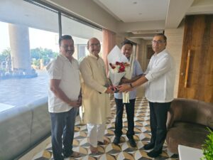 मुंबई : आज राज्याचे माजी राज्यमंत्री प्रवीण भोंसले यांनी रत्नागिरी-सिंधुदुर्गचे खासदार तथा माजी केंद्रीय मंत्री नारायण राणे व महाराष्ट्र राज्याचे मत्स्य उद्योग व बंदर विकास मंत्री नितेश राणे यांच्या आदिष, जुहू मुंबई येथील निवासस्थानी भेट घेतली व दोन्ही मान्यवरांना २०२५ नवीन वर्षाच्या हार्दिक शुभेच्छा दिल्या. या भेटीत प्रवीण भोंसले यांनी सावंवाडीतील मल्टी स्पेशलिटी हॉस्पिटल जनतेला आरोग्य सेवा देण्यासाठी लवकर कार्यरत होण्याबाबत खासदार नारायण राणे यांनी विशेष लक्ष द्यावे, अशी विनंती केली. तसेच दोडामार्ग येथील MIDC येथे आणखीन जमीन घेऊन तेथे हॉस्पिटलसाठी लागणारी मशिनरी निर्माण करण्याचा प्रकल्प उभा करुन सिंधुदुर्गातील हजारों तरुणांना नोकऱ्या मिळतील, असा विश्र्वास खा. नराण राणे यांनी व्यक्त केला. यावेळी सतीश शेठ सुराणा व संतोष कोठारी आदी उपस्थित होते.