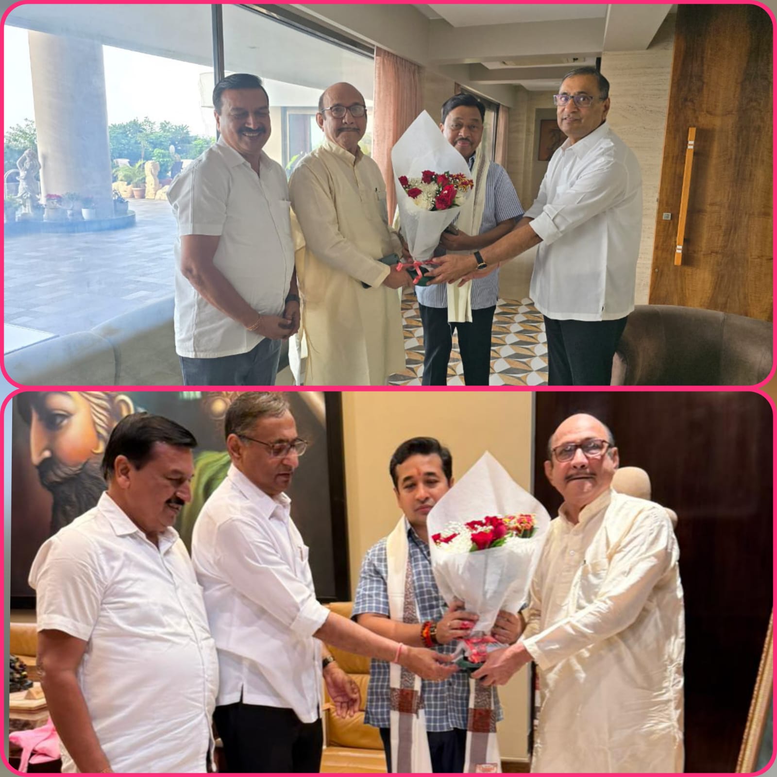 मुंबई : आज राज्याचे माजी राज्यमंत्री प्रवीण भोंसले यांनी रत्नागिरी-सिंधुदुर्गचे खासदार तथा माजी केंद्रीय मंत्री नारायण राणे व महाराष्ट्र राज्याचे मत्स्य उद्योग व बंदर विकास मंत्री नितेश राणे यांच्या आदिष, जुहू मुंबई येथील निवासस्थानी भेट घेतली व दोन्ही मान्यवरांना २०२५ नवीन वर्षाच्या हार्दिक शुभेच्छा दिल्या. या भेटीत प्रवीण भोंसले यांनी सावंवाडीतील मल्टी स्पेशलिटी हॉस्पिटल जनतेला आरोग्य सेवा देण्यासाठी लवकर कार्यरत होण्याबाबत खासदार नारायण राणे यांनी विशेष लक्ष द्यावे, अशी विनंती केली. तसेच दोडामार्ग येथील MIDC येथे आणखीन जमीन घेऊन तेथे हॉस्पिटलसाठी लागणारी मशिनरी निर्माण करण्याचा प्रकल्प उभा करुन सिंधुदुर्गातील हजारों तरुणांना नोकऱ्या मिळतील, असा विश्र्वास खा. नराण राणे यांनी व्यक्त केला. यावेळी सतीश शेठ सुराणा व संतोष कोठारी आदी उपस्थित होते.
