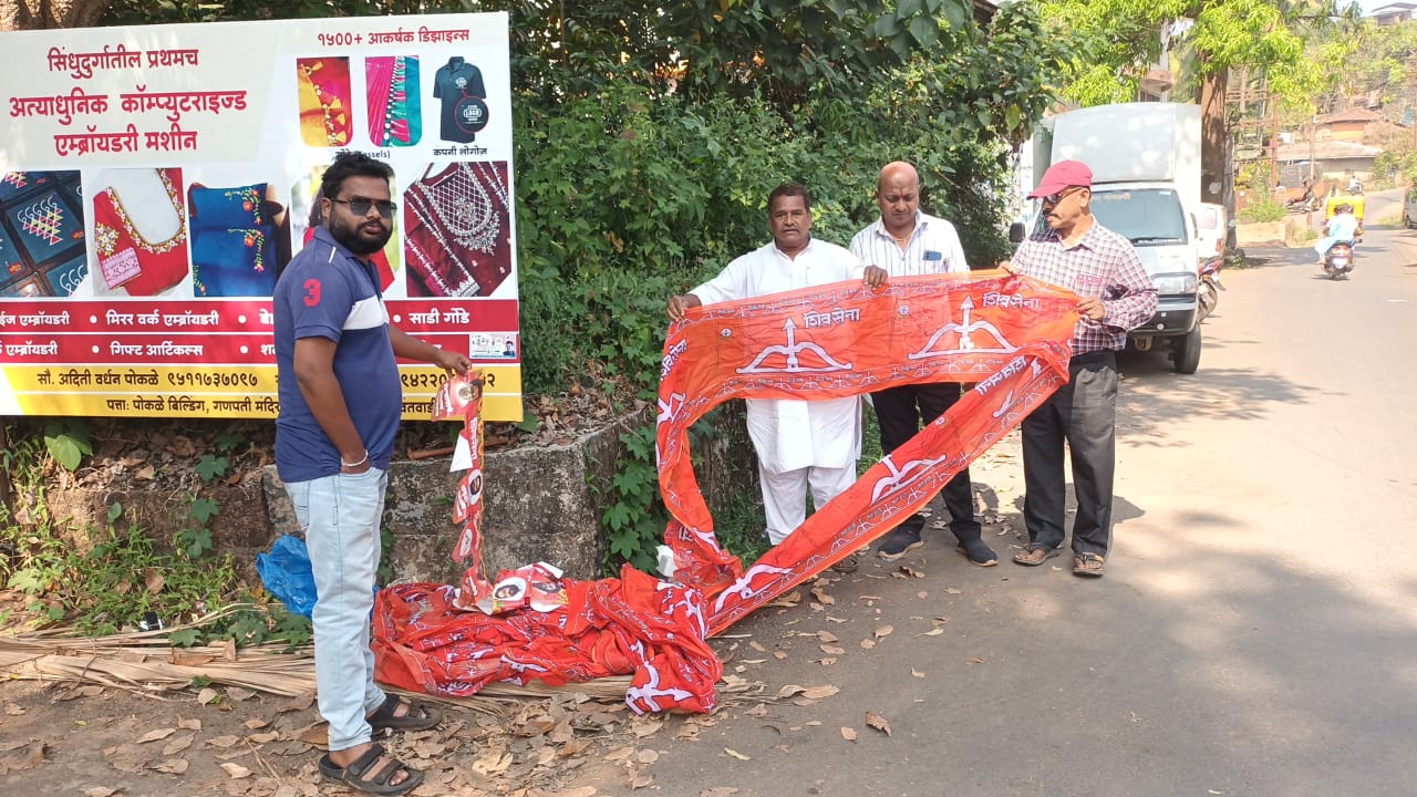 दरम्यान, शब्बीर मणियार म्हणाले, स्थानिक आमदार दीपक केसरकर हे शिवसेनेच्या भगव्या ध्वजावर व धनुष्यबाण या चिन्हावर निवडून आले असून त्यांच्याच सावंतवाडीत आज त्यांच्याच कार्यकर्त्यांकडून निवडणुकीच्यावेळी लावण्यात आलेले झेंडे, शेले हे रस्त्यावर फेकण्यात आलेत. स्व. बाळासाहेब ठाकरे, आनंद दिघे यांचे फोटो या शेल्यांवर आहे. एकनाथ शिंदेंचाही फोटो यावर आहे. भगव्यासह धनुष्यबाणाचा अपमान हे लज्जास्पद असल्याची भावना शब्बीर मणियार यांनी व्यक्त करत हे सहन केलं जाणार नाही. हा शिवसैनिकांचा अपमान असल्याचे मत त्यांनी यावेळी व्यक्त केले आहे. याप्रसंगी उबाठा शिवसेनेचे शहरप्रमुख शैलेश गवंडळकर, आशिष सुभेदार आदी उपस्थित होते.