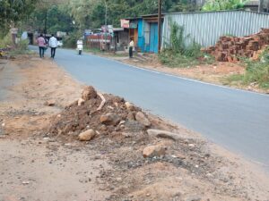 सावंतवाडी: एसटी महामंडळाच्या इलेक्ट्रीक वायर टाकण्यासाठी बाहेरचावाडा परिसरात खोदकाम केल्यानंतर भर रस्त्यात तसाच ठेवण्यात आलेला मातीचा मोठा ढिगारा अपघाताला निमंत्रण देत आहे.