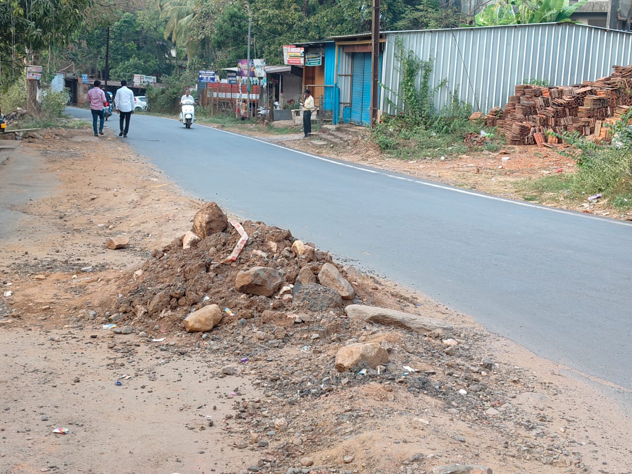 सावंतवाडी: एसटी महामंडळाच्या इलेक्ट्रीक वायर टाकण्यासाठी बाहेरचावाडा परिसरात खोदकाम केल्यानंतर भर रस्त्यात तसाच ठेवण्यात आलेला मातीचा मोठा ढिगारा अपघाताला निमंत्रण देत आहे.