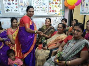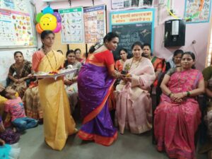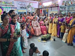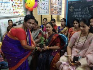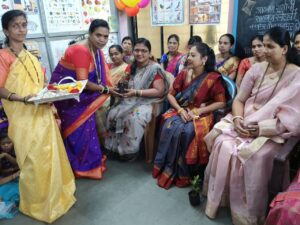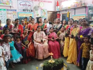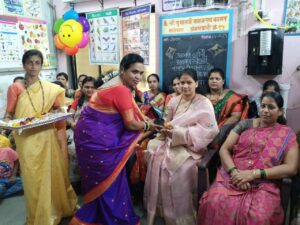 यावेळी हळद-कुंकू लावून तुळशीचे रोप सर्व महिलांना अंगणवाडी सेविका अनुराधा पवार यांच्या हस्ते देण्यात आले यावेळी अंगणवाडी मदतनीस अमिषा सासोलकर प्रशालेच्या मुख्याध्यापिका भक्ति फाले , शिक्षिका प्राची ढवळ, पूजा ठाकूर ,भावना गावडे हेमांगी जाधव तसेच पालक महिला सपना विरनोडकर, स्वानंदी नेवगी, राधिका मुंज, भावना किटलेकर,, पूजा साटेलकर नेहा काष्टे आर्या मुंज, तेजस्विनी चव्हाण, संगीता पेडणेकर, पूजा मुंज पूजा गावडे, प्रांजल मेस्त्री, धनश्री पाटील आदी उपस्थित होत्या.