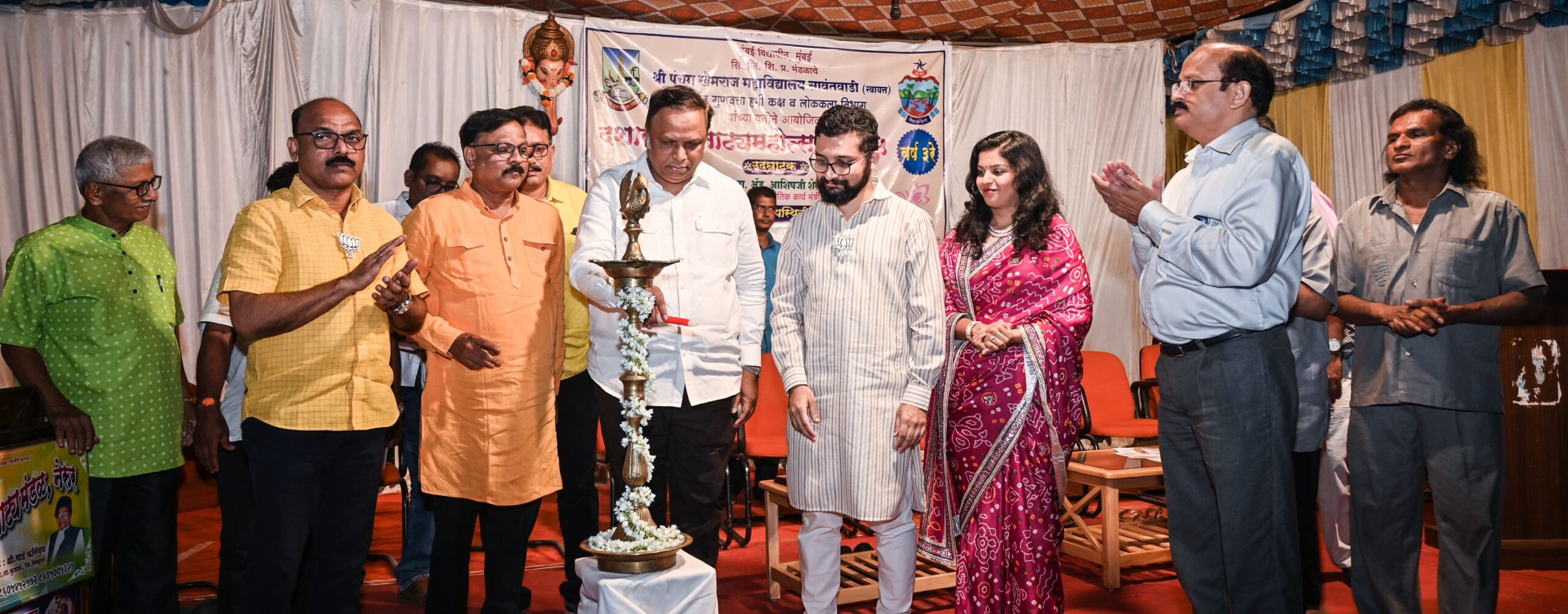 सावंतवाडी राजघराण व श्री पंचम खेमराज महाविद्यालयाच्या लोककला विभागातर्फे २६ जानेवारी पर्यंत लोककला दशावतार महोत्सव २०२५ आयोजित करण्यात आला आहे. याचा शुभारंभ सांस्कृतिक मंत्री अँड आशिष शेलार यांच्या हस्ते करण्यात आला. यावेळी व्यासपीठावर भाजप जिल्हाध्यक्ष प्रभाकर सावंत, युवराज लखमराजे भोंसले, युवराज्ञी श्रद्धाराजे भोंसले, जिल्हा बँक उपाध्यक्ष अतुल काळसेकर, माजी नगरसेवक मनोज नाईक, अजय गोंदावळे, राजू राऊळ, अँड. शामराव सावंत, डॉ. सतिश सावंत, प्राचार्य दिलीप भारमल, भाई कलिंगण, शरद मोचेमाडकर, जयप्रकाश सावंत आदी उपस्थित होते.