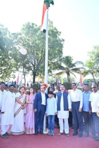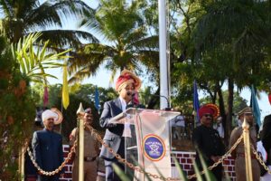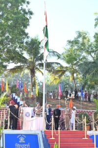 सिंधुदुर्गनगरी ओरोस येथे राष्ट्रध्वज फडकवल्या नंतर पालकमंत्री नितेश राणे यांनी जनतेला संबोधित केले. यावेळी जिल्हाधिकारी अनिल पाटील,आमदार निलेश राणे, एस.पी. सौरभ कुमार अग्रवाल, सी