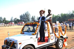 सिंदुदुर्गनगरी : आज पालकमंत्री नितेश राणे यांनी प्रजासत्ताक दिनाच्या वर्धापन दिनानिमित्त सिंधुदुर्ग नगरी मुख्यालय येथे राष्ट्रध्वज फडकवून राष्ट्रध्वजाला मानवंदना दिली. व प्रजासत्ताक दिनाच्या सिंधुदुर्ग जिल्ह्यातील जनतेला मनःपूर्वक शुभेच्छा दिल्या.आपला पालकमंत्री म्हणून मी आपली प्रामाणिक सेवा करणार आहे.सिंधुदुर्ग जिल्ह्याच्या विकासासाठी मी पालकमंत्री म्हणून सदैव तत्पर आहे.सिंधुदुर्ग जिल्ह्याच्या सर्वांगीण विकासासाठी राज्य शासन कटिबद्ध आहे. अशी ग्वाही सिंधुदुर्ग जिल्ह्यातील जनतेला आज प्रजासत्ताक दिनानिमित्त पालकमंत्री नितेश राणे यांनी दिली.