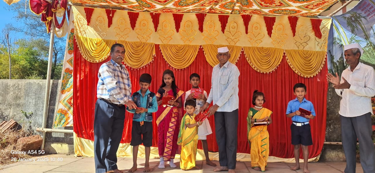 या कार्यक्रमाचे प्रास्ताविक शिक्षक जावेद तांबोळी यांनी केले. कार्यक्रमाचे आभार नामदेव गावडे यांनी मानले. यावेळी शालेय व्यवस्थापन समितीचे अध्यक्ष सायली गावडे, प्रा.मधुकर गावडे,पोलीस पाटील रवींद्र गावडे, ग्राम पंचायत सदस्य संजना गावडे तसेच गावातील सर्व ग्रामस्थ उपस्थित होते.