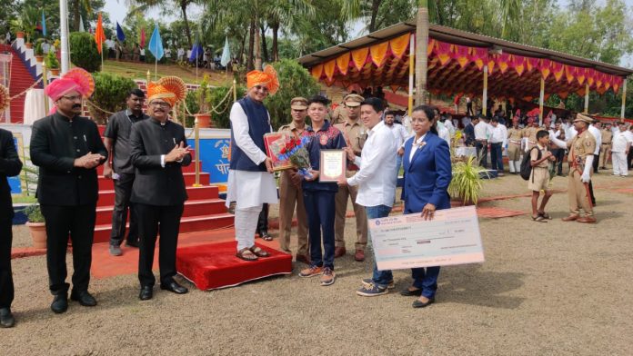 सिंधुदुर्गनगरी : महाराष्ट्र राज्य क्रीडा आणि युवक सेवा संचालनालय अंतर्गत जिल्हा क्रीडा अधिकारी कार्यालय, सिंधुदुर्ग द्वारा सन २०२३-२४ चा सिंधुदुर्ग जिल्हा पुरुष गुणवंत खेळाडू पुरस्कार सावंतवाडी येथील आयुष दत्तप्रसाद पाटणकरला आज शालेय शिक्षण मंत्री दीपक केसरकर यांच्या हस्ते प्रदान करण्यात आला. शाल, श्रीफळ, सन्मानचिन्ह, रोख रक्कम रुपये दहा हजार, प्रशस्तीपत्र असे या पुरस्काराचे स्वरूप आहे. यावेळी आयुषचे वडील दत्तप्रसाद पाटणकर व आयुष यांनी सदर पुरस्कार स्वीकारला. या पुरस्कार प्रदान सोहळ्याला शालेय शिक्षण मंत्री दीपक केसरकर यांच्यासह जिल्हाधिकारी किशोर तावडे, पोलीस अधीक्षक सौरभ कुमार अग्रवाल यांसह जिल्हा मुख्यालय कार्यालयातील विविध पदाधिकारी उपस्थित होते. जाहीर झाला आहे. येत्या स्वातंत्र्यदिनी सिंधुदुर्गाचे पालकमंत्री आणि राज्याचे सार्वजनिक बांधकाम मंत्री रविंद्र चव्हाण यांच्याहस्ते सिंधुदुर्गनगरी येथे आयुष याला हा पुरस्कार समारंभपूर्वक प्रदान केला जाणार आहे.