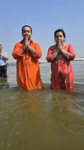याबाबत मंत्री नितेश राणे यांनी सोशल मीडियावर एक्स वर तशी पोस्टही केले आहे. त्यात ते म्हणतात,”आज प्रयागराज येथे कुटुंबासह महाकुंभात त्रिवेणी संगमावर पवित्र स्नान करण्याचे परम सौभाग्य प्राप्त झाले. हा माझ्या आयुष्यातील त्या मौल्यवान आणि भावनिक क्षणा पैकी एक क्षण आहे, हिंदू संस्कृती, परंपरा आणि आई प्रती असलेल्या भक्तीचे जीवन प्रतीक म्हणून हा भावनिक क्षण माझ्या हृदयात नेहमीच कोरला जाईल. गंगा, यमुना आणि सरस्वती यांच्या संगमात स्नान करून सनातन धर्माच्या गौरवशाली परंपरेचा अनुभव यावेळी घेतला.” असे त्यांनी म्हटले आहे.