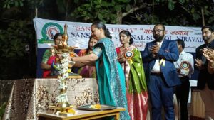 प्रारंभी कार्यक्रमाचे उद्घाटन दीप प्रज्वलनाने करण्यात आले. यावेळी माध्यमिक शिक्षणाधिकारी कविता शिंपी यांच्या शुभहस्ते संस्कार स्कूलच्या माध्यमातून आर्टिफिशियल इंटेलिजन्स अर्थात ‘कृत्रिम बुद्धिमत्ता’ हा तंत्रज्ञानाने युक्त अभ्यासक्रम राबविणेबाबत शाळेच्या माध्यमातून विद्यार्थ्यांना येत्या 23 मार्च रोजी होणाऱ्या शिष्यवृत्ती परीक्षेच्या पोस्टरचे अनावरणही करण्यात आले.